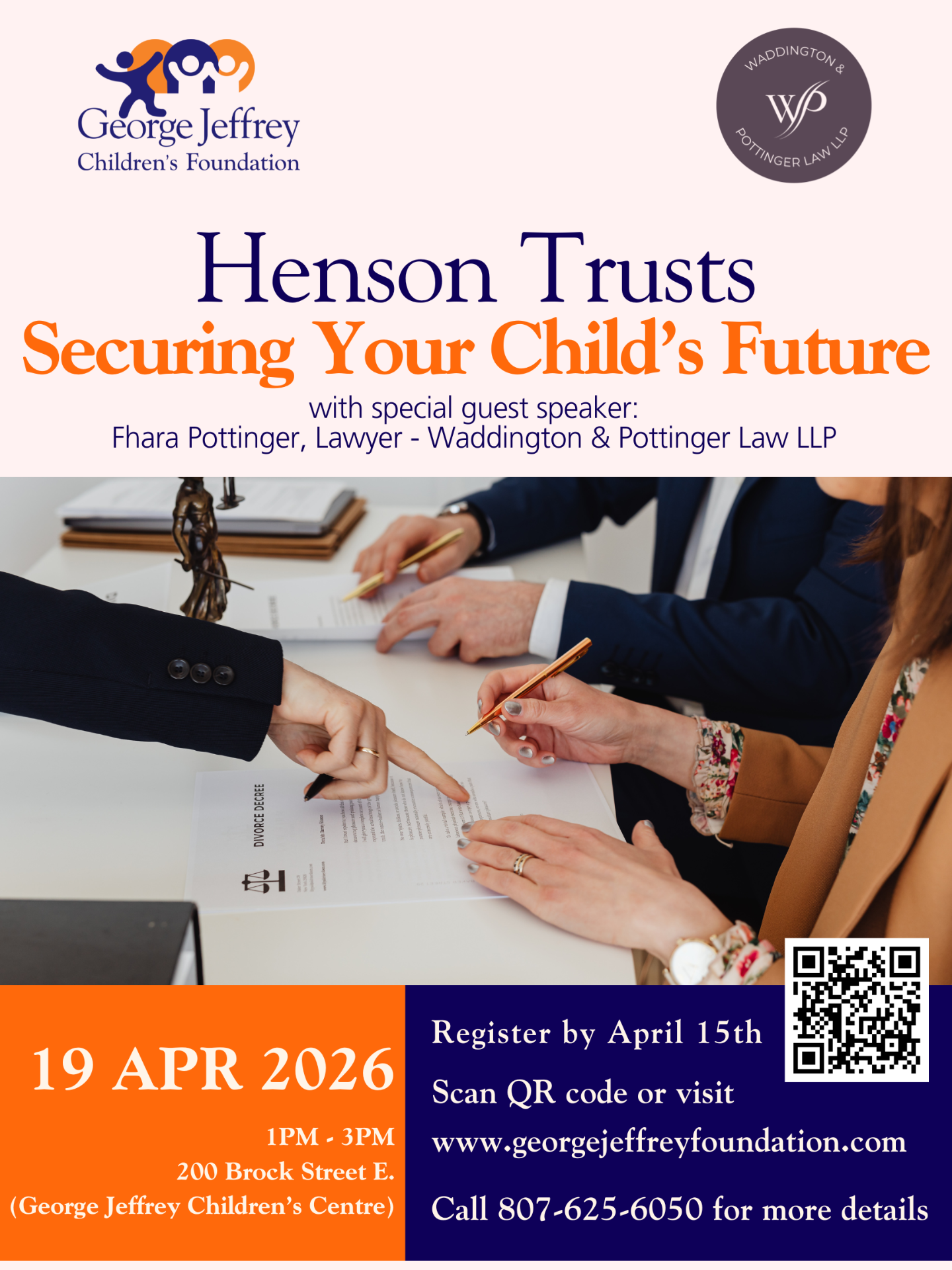 George Jeffrey Children's Foundation (GJCF) is a registered charity, officially incorporated in 2004. The Foundation is governed by a volunteer Board of Directors who encourage and administer charitable gifts to ensure that George Jeffrey Children's Centre is able to fulfill its mission of enriching children's lives.